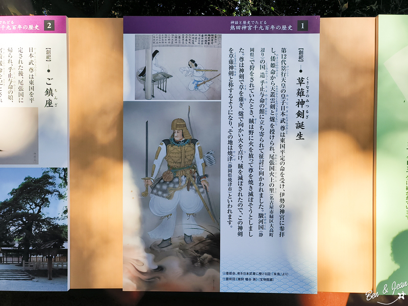 熱田神宮創建於 約1,900年前,是日本歷史悠久的神社之一。主祭神為 熱田大神,其神體便是天皇三大神器之一的「草薙劍」,與天照大神息息相關,使熱田神宮擁有極崇高的地位。
