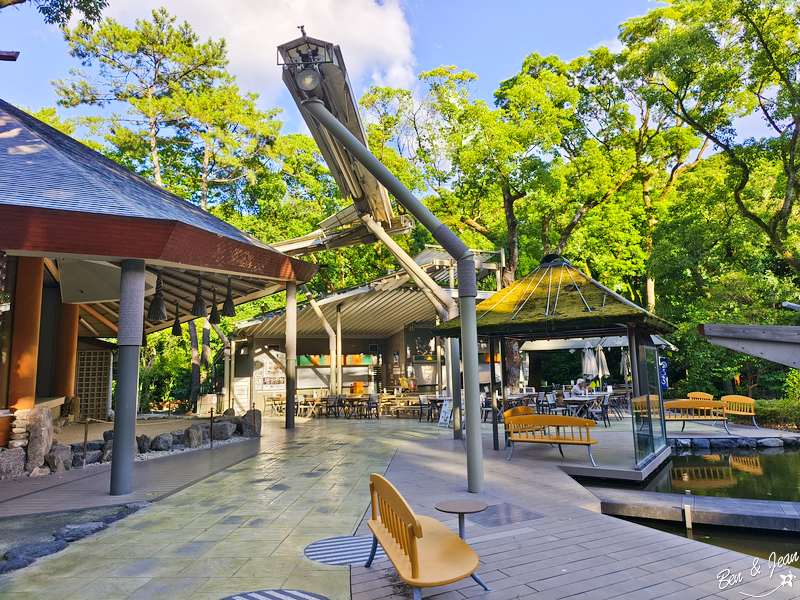 提供名古屋特色きしめん(扁平烏龍麵),可在戶外座位邊用餐邊欣賞神宮庭園。