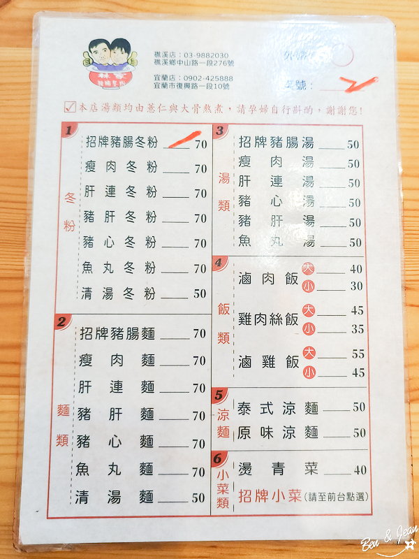 「林家豬腸冬粉」已經是在宜蘭市區立足多年的老店了,後來才知道礁溪也有一間林家豬腸冬粉,兩家都是直營店