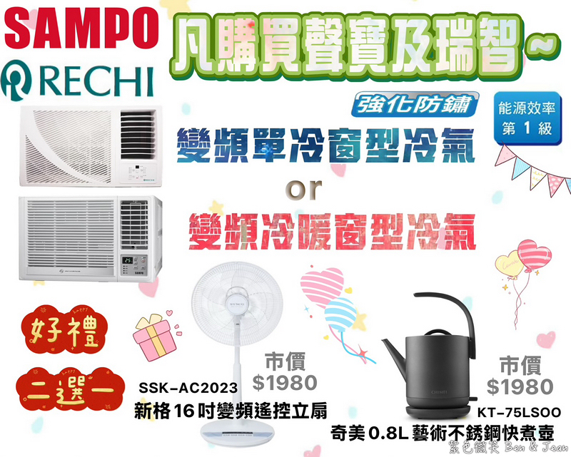 窗型好禮二選一,重點是如果選聲寶的冷氣,現場還有驚喜報價哦,快來看看吧