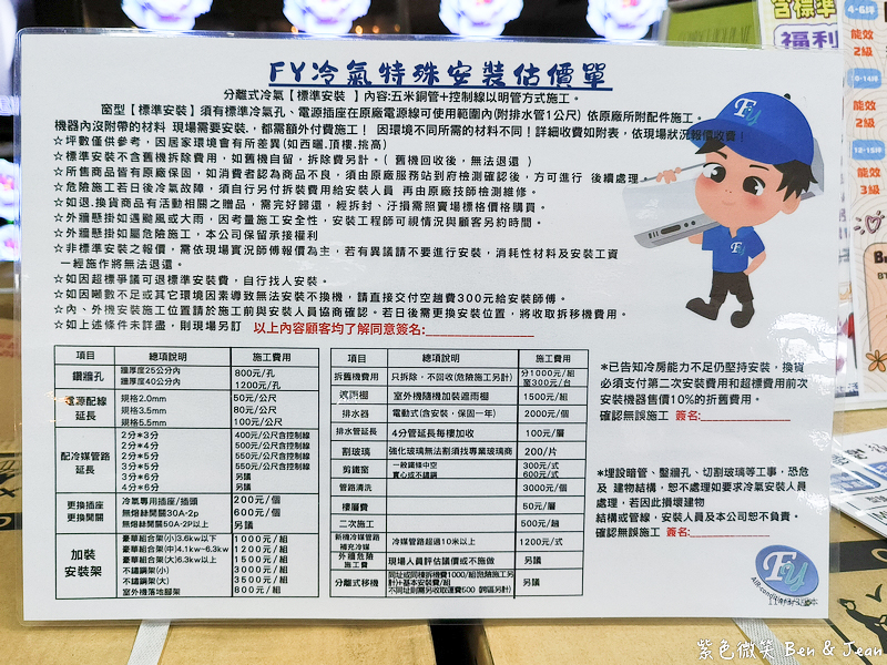 如果有特殊安裝的問題,這裏的施工價格也很公開透明