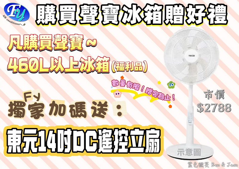 聲寶福利品 460公升冰箱以上,送DC 遙控立扇,但羅東這場直接加碼到16吋!! 好優惠啊