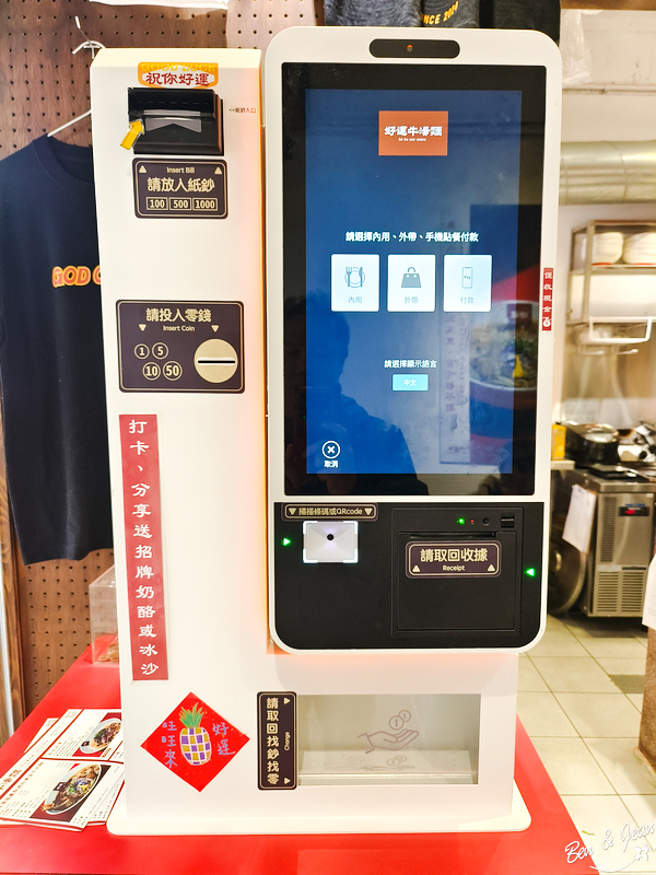 好運牛湯麵配有點餐機,很多新的店家都有這樣的設置了