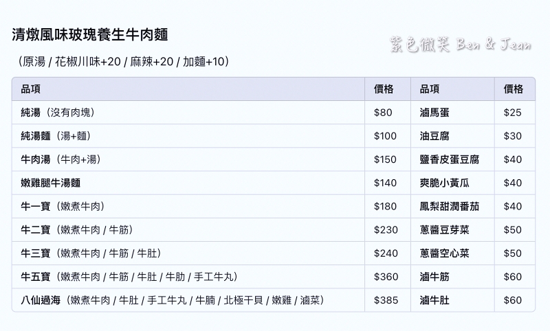 好運牛湯麵菜單價位