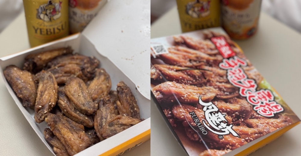 從車站外帶回飯店吃,一邊吃雞翅,一邊喝啤酒,過癮啦!