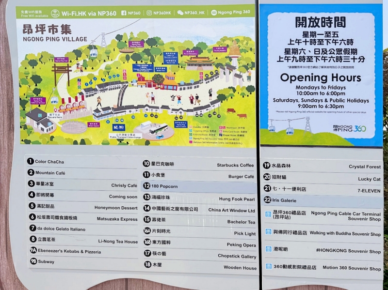 昂坪市集佔地廣闊設有3個旅遊景點及25間餐廳、購物及娛樂設施