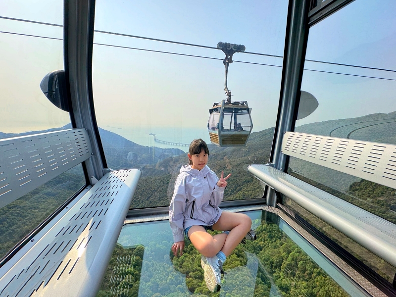 「昂坪360纜車」景色壯麗,體驗難忘:搭乘纜車時,可俯瞰大嶼山山巒、南中國海、香港國際機場及天壇大佛等景觀,令人印象深刻。 全新的全景車廂刺激有趣,第一次搭乘纜車感到非常開心,是親子旅遊的好選擇,建議預留至少 3~4小時的時間喔!
