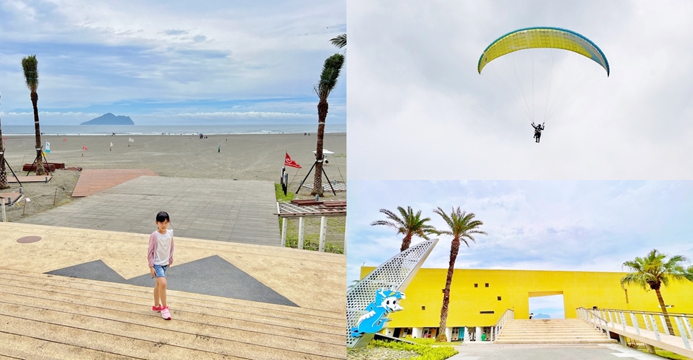 ★全文分享★ 【外澳沙灘】免費親子玩水沙灘!外澳遊客中心九號咖啡館賞龜山島,看飛行傘衝浪牽罟,還有沖水區超讚