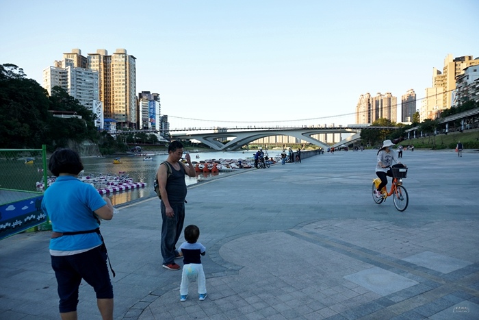碧潭就位於捷運新店站旁,地點非常方便,搭個捷運就可以來這裏看山看水、自在寫意,碧潭水岸同時也是附近居民玩樂的好地方,當天下午好多人扶老攜幼來這裏散步,就算帶自行車來這裏沿水岸騎乘,也很不錯!