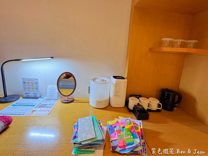 提供:平板電視、Wi-Fi、電冰箱、電熱水壺、保險箱、辦公桌、衣架、2件式睡衣、拖鞋、礦泉水、咖啡和茶包、空氣清淨機、加溼器。