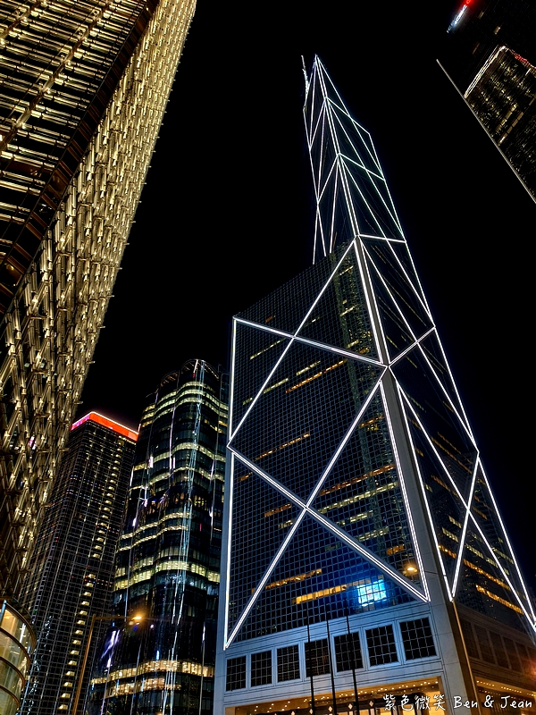 畫面XX 的那棟,就是著名的貝聿銘先生設計的中環的中國銀行大廈