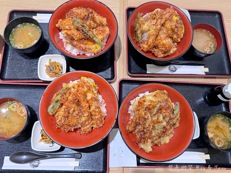 我們點了人氣餐點「穴子天丼」、「炸蝦」、「炸雞天婦羅」,還有一份綜合的「蝦+雞」天丼組合,炸物外酥內嫩,搭配白飯超級下飯!