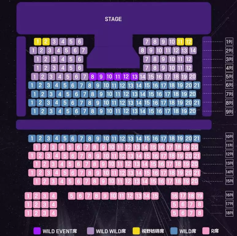 - WILD WILD席 每場次限量5位購買,且座位隨機,無法指定連續座位